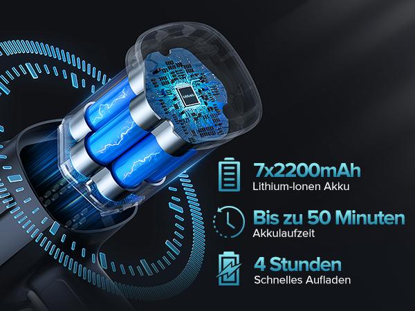 Bis zu 50 Minuten Laufzeit & herausnehmbarer Akku